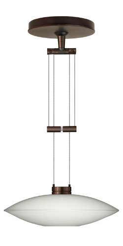 #Glass:Opal Glossy, Finish:Bronze, Light Bulb:(1)50w T4 GY6.35 12v Halogen Low-voltage adjustable mini pendant with handcrafted glass. Up or down adjusting is achieved by squeezing the cable adjuster, then releasing to lock in position. Pendant shade and cord/socket set, plus flat canopy. Electronic 60w dimmable transformer fits partially in junction box. 8' field-adjustable bare silver-color braided cable. Swivel/pivot feature, suiting for use on sloped ceilings. Quick-Connect jack provided. Integral Quick-Connect adapter.