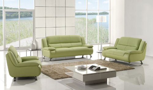 3pc Contemporary Modern Leather Sofa Set, #AM-733-GN