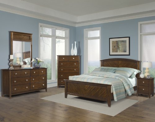 #Call us at 866-730-7837 x 1 for the guaranteed lowest price! Contemporary Style Honey Brown Finish Hardwood solids and Birch veneers Drawer pulls are brushed nickel Top drawers are felt lined Drawer boxes are stained and sealed Drawers are French dovetailed in the front and English dovetailed in the back Metal bottom mounted drawer glides Headboard has a crescent shaped top Set includes bed, nighstand, dresser and mirror. Additional matching accessories available as shown below The Bardot bedroom collection has casual styling paired with contemporary elements. Hardwood solids and Birch veneers create a warm, honey brown tone. The drawer pulls are brushed nickel to add shine and contrast. The top drawers are felt lined for more personal items. All drawer boxes are stained and sealed. The drawers are French dovetailed in the front and English dovetailed in the back along with metal bottom mounted drawer glides for extra strength and smoothness. The headboard has a crescent shaped top fo