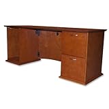 | ✚✚✚ Lorell Contemporary 9000 Credenza - PedestalRight Side - Hardwood - Honey Cherry Lorell Contemporary 9000 Credenza - PedestalRight Side - Hardwood - Honey Cherry Right-pedestal credenza is part of the Lorell 90000 Series that is made of select hardwood veneers. The catalyzed lacquer top coat makes it stain-resistant and scratch-resistant. Contemporary curvilinear-style pulls on drawers have a lustrous nickel finish. Right pedestal includes two file drawers that accommodate letter-size and legal-size filing. The left side of the credenza offers an open compartment for CPU storage. One grommet in the full-height modesty panel provides easy cord management.