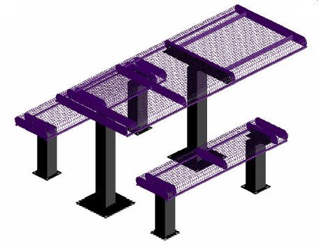 #Visions Innovated Products Inc. has been manufacturing long lasting corrosive resistant WEBCOAT outdoor tables and benches for more than fifteen years. Combining this experience of using high strength steel fabrication with the newest technologies of thermo plastic coatings has continuously given WEBCOAT the edge over all competition .WEBCOAT offers more than 500 different product items in different styles with color choices unlimited. Our many styles and frame configurations of picnic tables and benches will allow you to obtain the distinctive look you desire for your outdoor eating and seating areas. When you furnish your areas with WEBCOAT you are installing the most maintenance free furniture available. Your local WEBCOAT representative can aid you with design layout.The best choice for corrosive free maintenance free outdoor furniture is Thermo Plastic PVC coating over steel and the best PVC coated furniture is WEBCOAT. WEBCOAT tables and benches have become the standard everywhere rugged highly used product is required because WEBCOAT IS THE STRONGEST MOST DURABLE THERMO PLASTIC COATED TABLE ON THE MARKET.Our tables and benches are made with heavier steel to prevent sagging. Then the tops and seats are coated with ULTRAVIOLET STABILIZED THERMO PLASTIC COATING FUSED AND BAKED TO 90% GLOSS FINISH. The high gloss finish is important not only for good looks but also in helping the ultraviolet stabilizers in the coating decrease fading over years of sunlight exposure.Table and bench under frames are made from heavy wall GALVANIZED STEEL TUBING. For added protection and good looks the frames are coated with BAKED ON POLYESTER BLACK POWDER COAT in addition to the galvanizing.ALL WEBCOAT tables that are ordered for Wheelchair access CONFORM TO THE LATEST ADA SPECIFICATIONS. 6Ft. Table 2 Un Attached 4Ft. Seats Rolled Edges 3/4" #9 Expanded Metal 4" Square Legs Surface Mt.